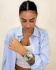 Un bracciale rigido effetto argento caratterizzato da maxi petali sovrapposti che richiamano la bellezza della natura. Le forme organiche e irregolari donano movimento e originalità, trasformandolo in un pezzo statement che completa qualsiasi outfit con un tocco artistico.